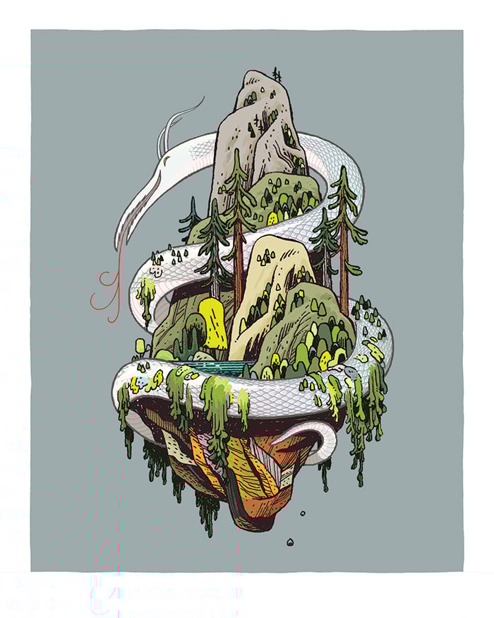 A little view of a big ole world, some of it close, and some of it farther away. Printed in 10 colors with archival ink on Epson Velvet Fine Art Paper. Ships flat via USPS First Class, because you're worth it!